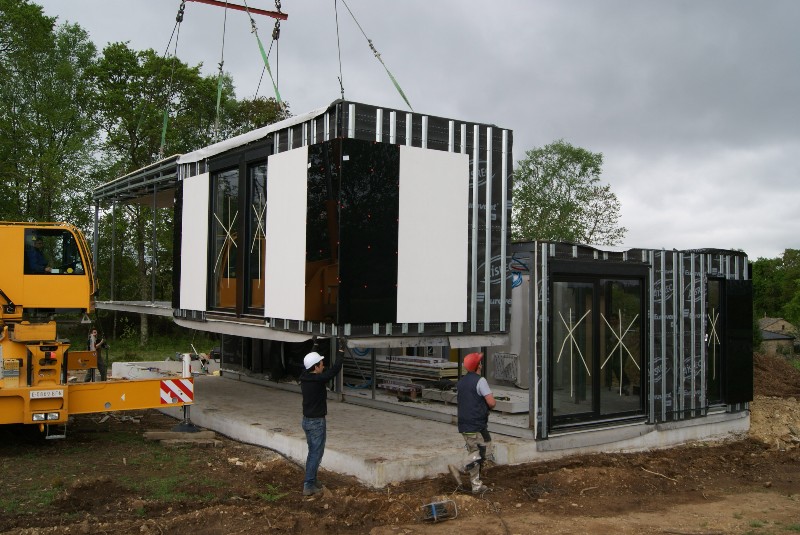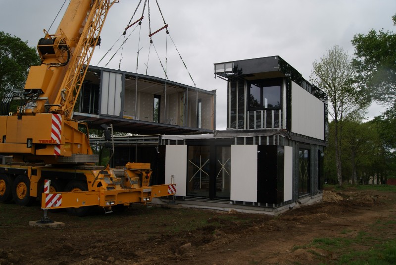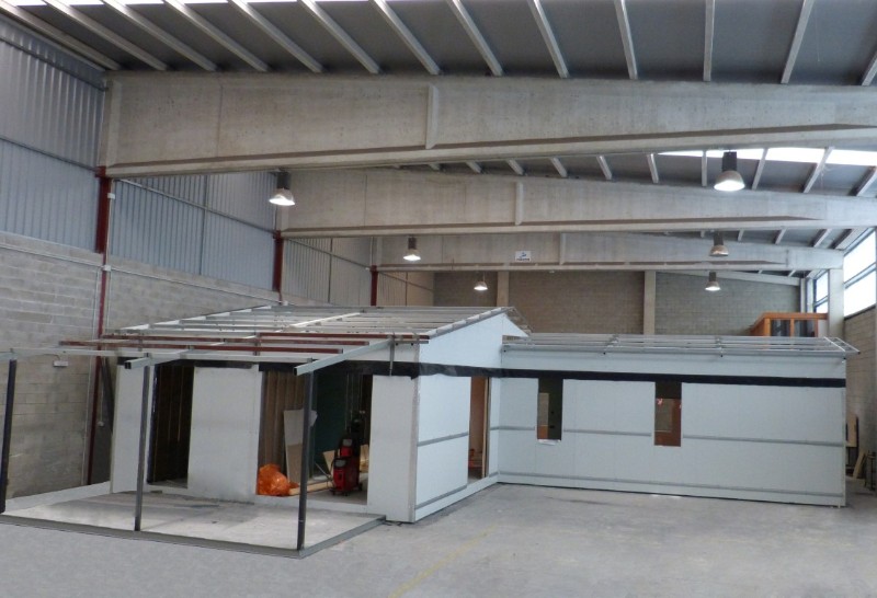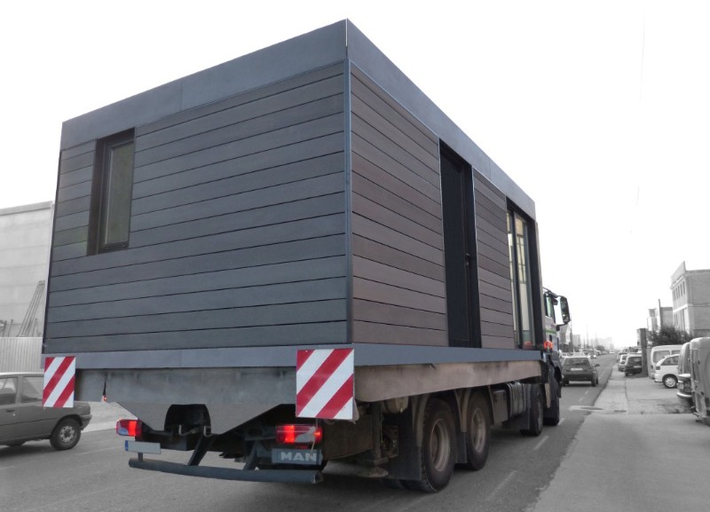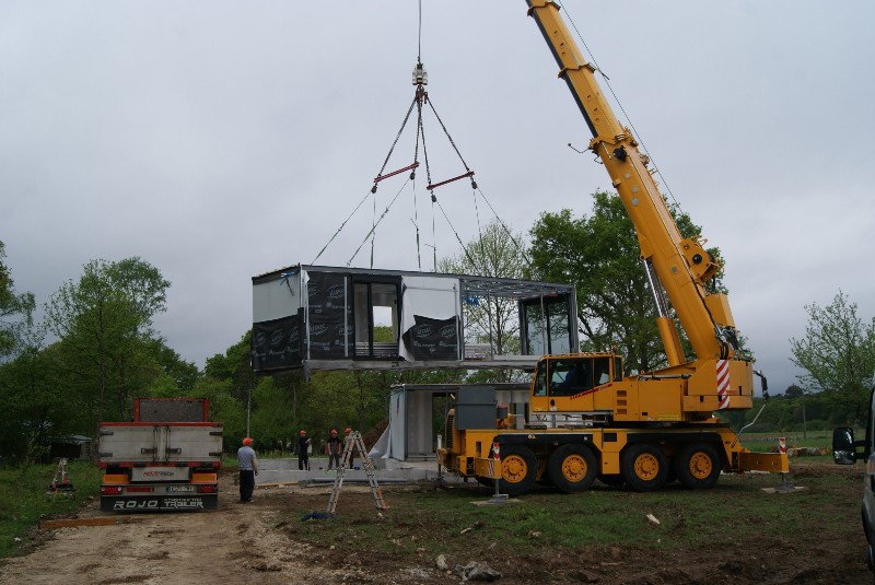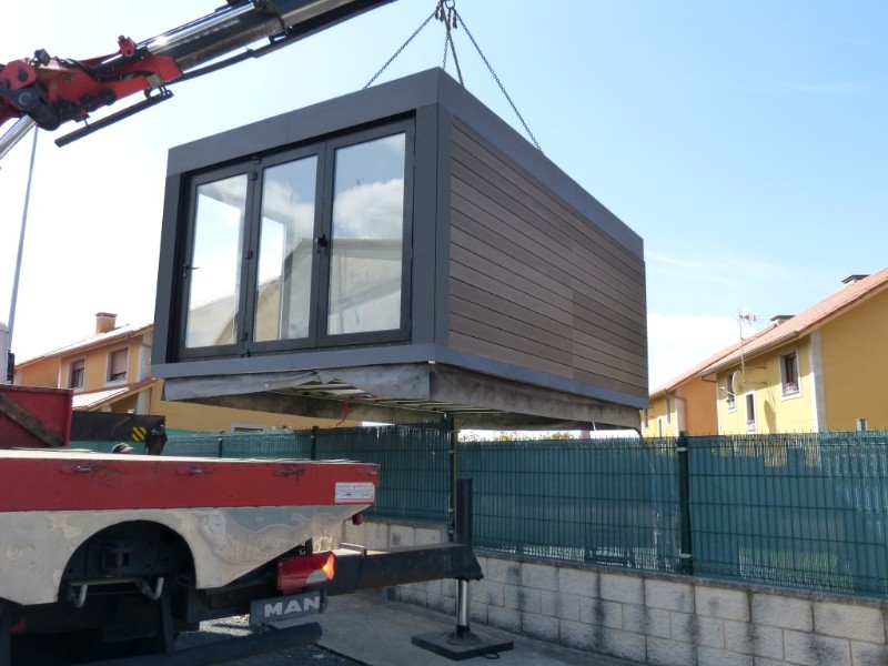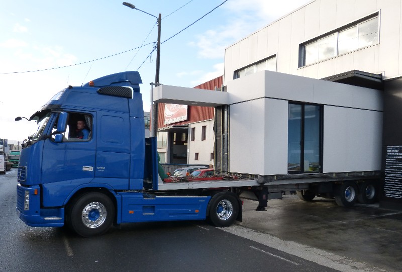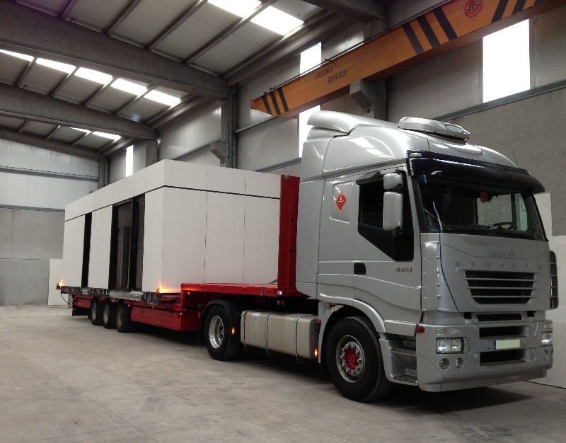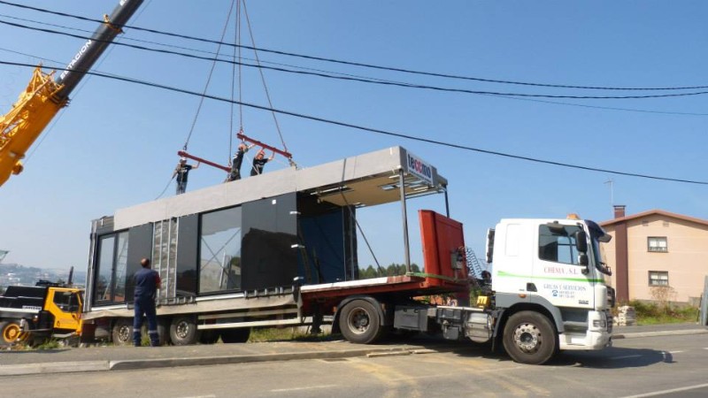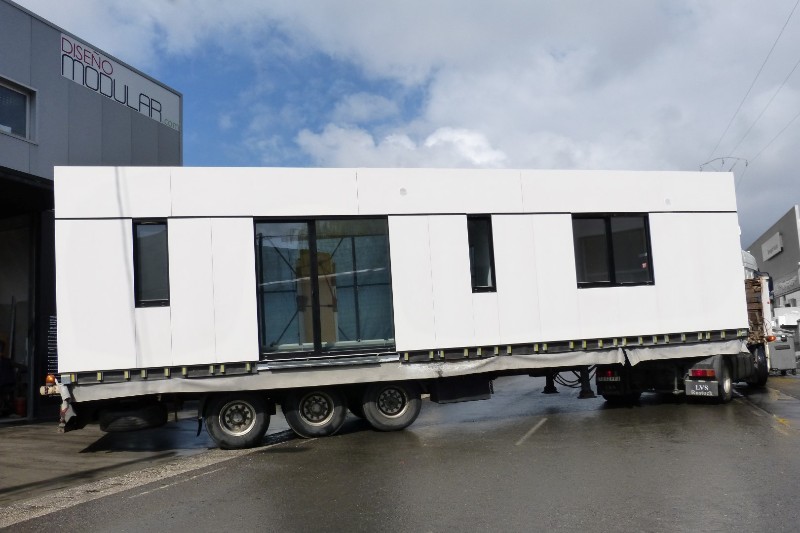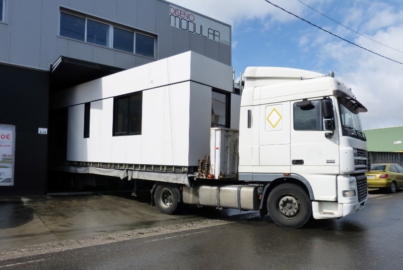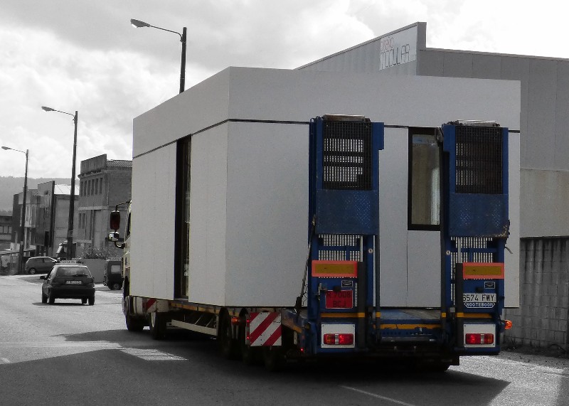 La construcción de los módulos se realiza en taller, así nos aseguramos la mejor calidad del proceso constructivo, minimizando los riesgos de una obra realizada in situ. También gracias a ello abaratamos los costes y los tiempos de ejecución. La construcción de los módulos se realiza en taller, así nos aseguramos la mejor calidad del proceso constructivo, minimizando los riesgos de una obra realizada in situ. También gracias a ello abaratamos los costes y los tiempos de ejecución.  Una vez concluida la preparación de los módulos que compondrán tu casa modular los transportamos hacia su emplazamiento, como se ve en las siguientes fotos.